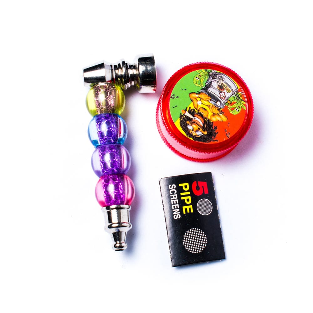 Pipa de metal con diseo de colores , mallas y mini grinder