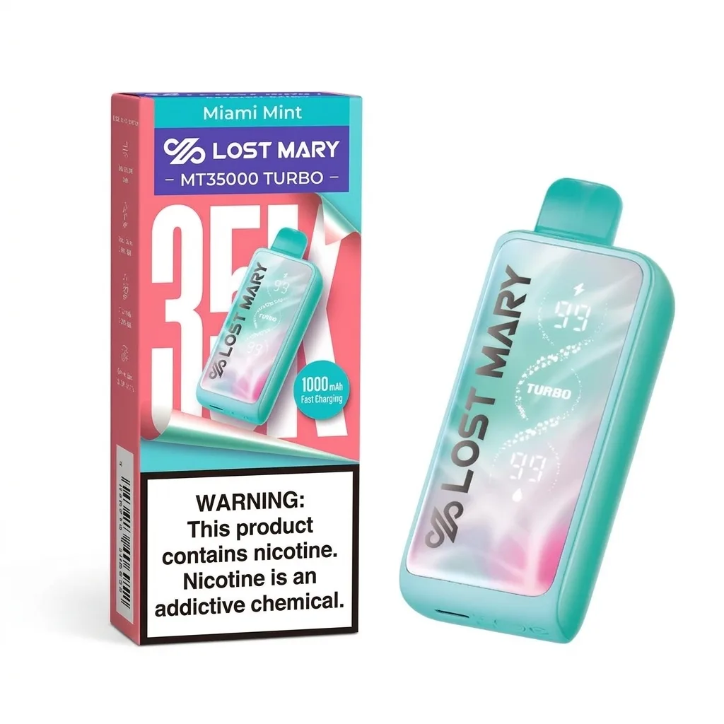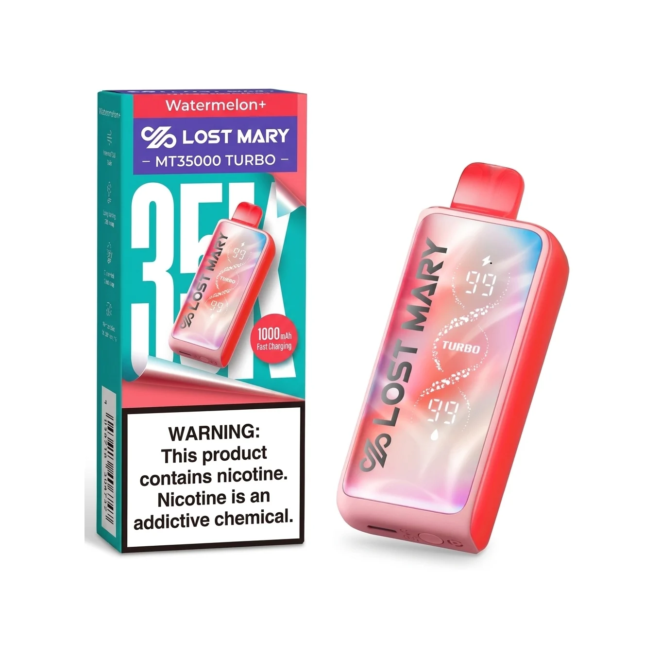 El Lost Mary MT35K Turbo es un vape desechable recargable que viene cargado con 18 ml de e-líquido y hasta 35,000 puffs, lo que lo hace uno de los más duraderos del mercado. Tiene pantalla integrada para ver cuánto líquido y batería te quedan, y trae dos modos: Turbo para más potencia y Smooth para sacar más caladas. Si buscas un vape desechable que dure de verdad, este es.