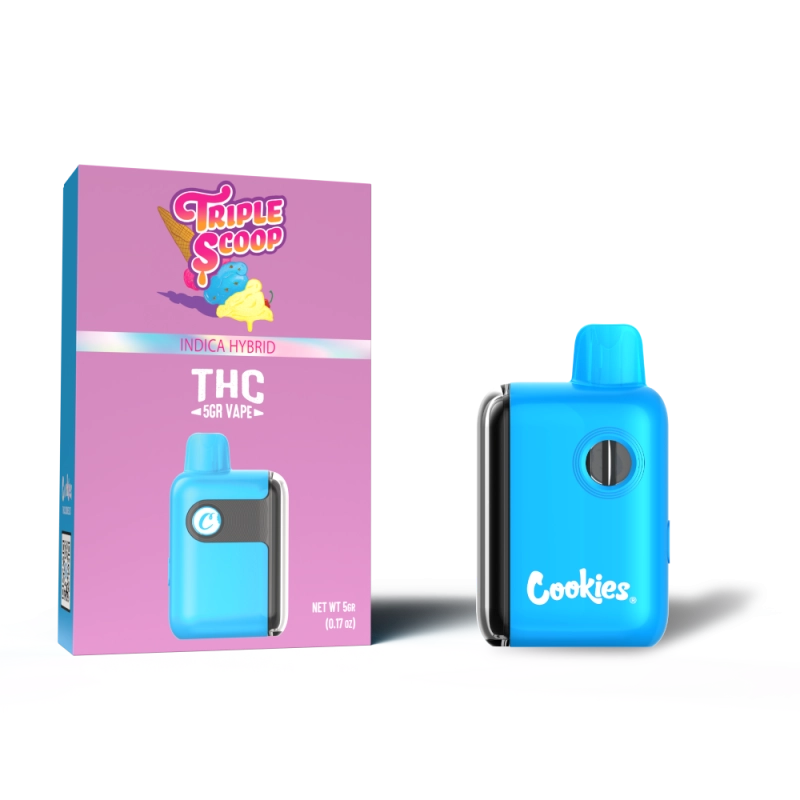 El Cookies Triple Scoop Vape THC-A 5G es un vaporizer desechable de lujo creado para quienes disfrutan del cannabis y la marihuana en su forma más indulgente. Este vape sin nicotina fusiona potencia, sabor y elegancia en un solo dispositivo.
