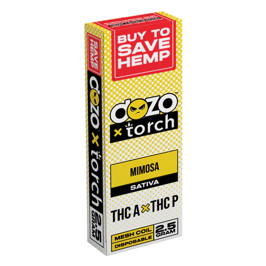 El Dozo x Torch Mimosa Vape THC 2,5G es un vapo de alta gama diseñado para quienes buscan energía, creatividad y claridad mental al fumar cannabis en formato limpio y sin combustión. Su fórmula avanzada combina THCA, D8 THC, D9 THC, THCP y Cannabis Derived Terpenes (CDT), con rosin de hash vivo libre de solventes y extractos veganos, asegurando una experiencia natural y potente.