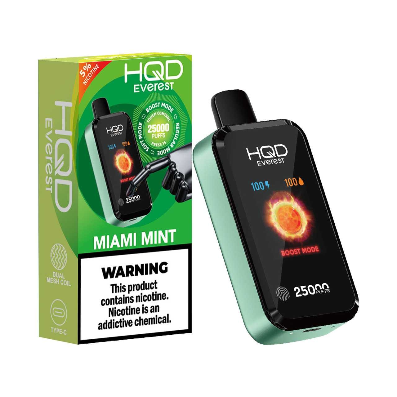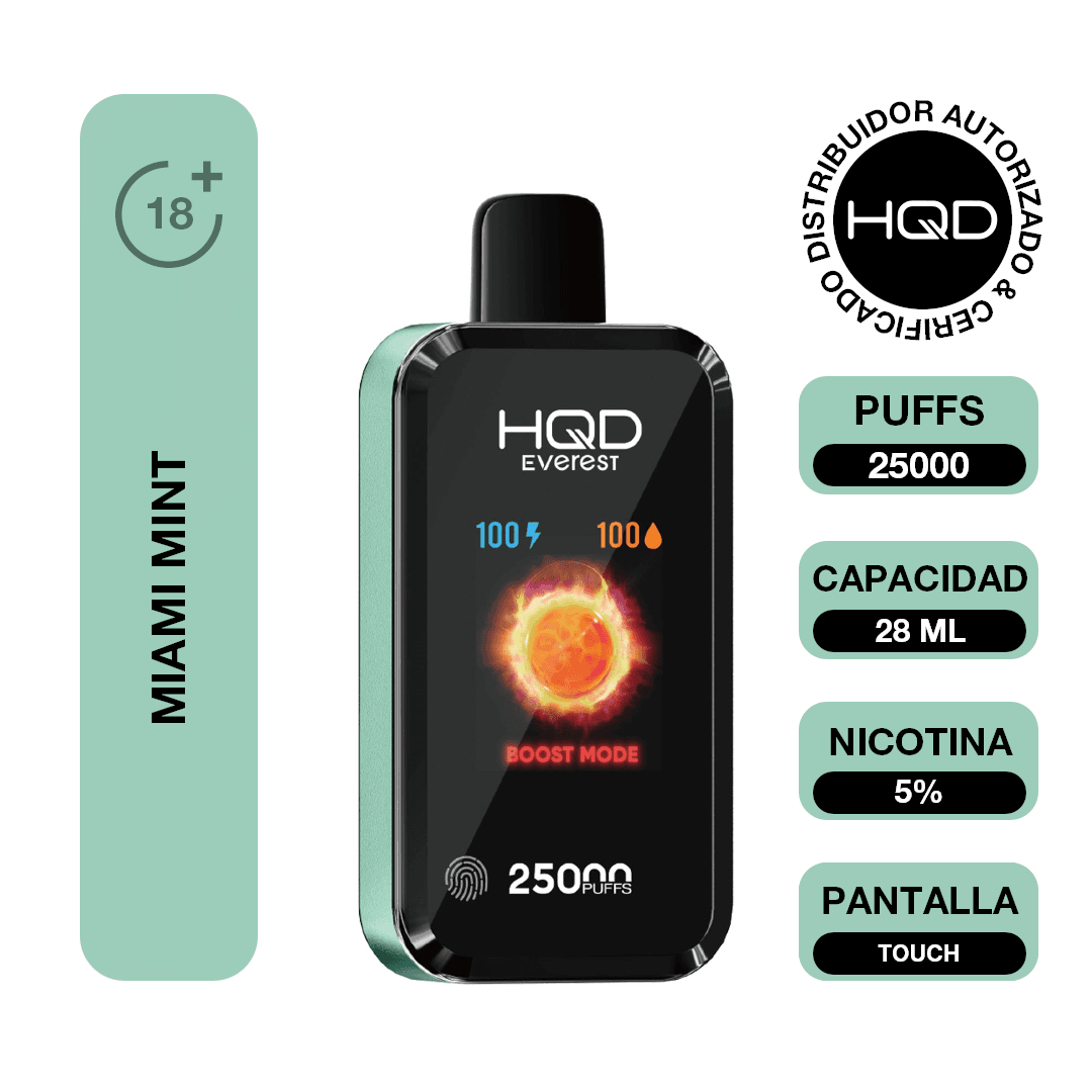 Su tamaño compacto de 47x25x103 mm lo hace fácil de llevar a todas partes, y su activación automática al inhalar elimina la necesidad de botones o configuraciones. El diseño ergonómico y moderno del Miami Mint HQD Everest Vape lo convierte en la opción ideal para quienes buscan una experiencia premium, conveniente y refrescante en cualquier lugar.