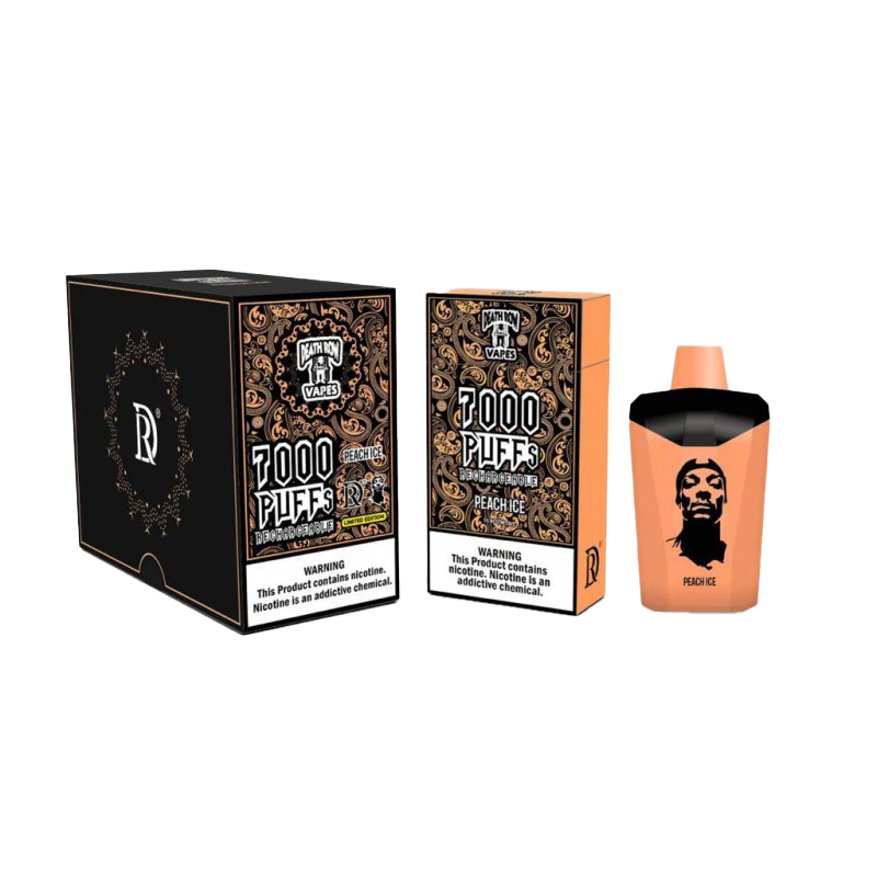El Peach Ice Death Row Snoop Dogg Vape es un dispositivo desechable que ofrece una experiencia refrescante y afrutada con el delicioso sabor de durazno jugoso, combinado con un toque helado que revitaliza en cada calada. Esta mezcla de dulzura y frescura es perfecta para quienes buscan un sabor afrutado con un toque mentolado que te envuelve y refresca.